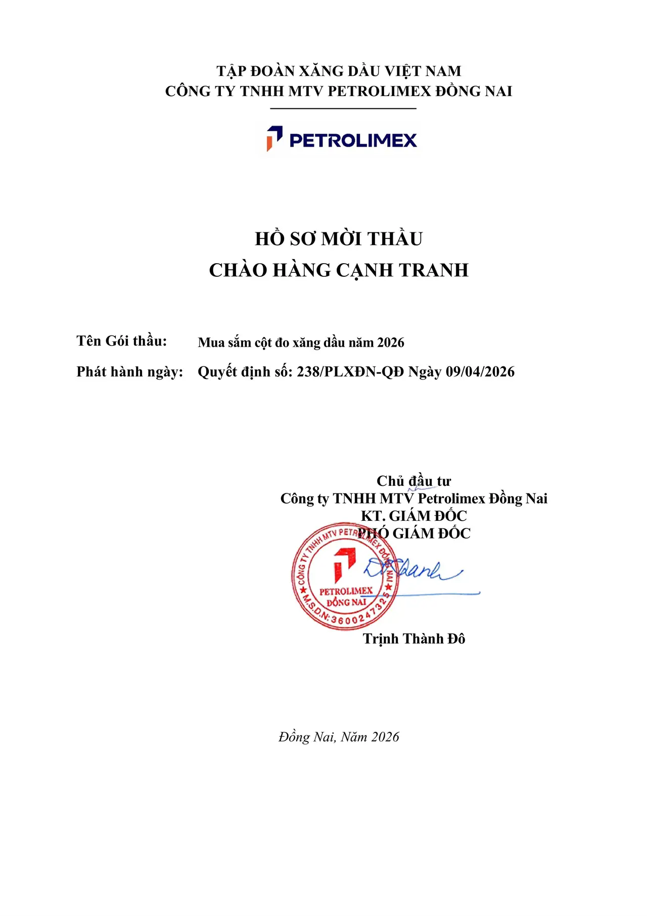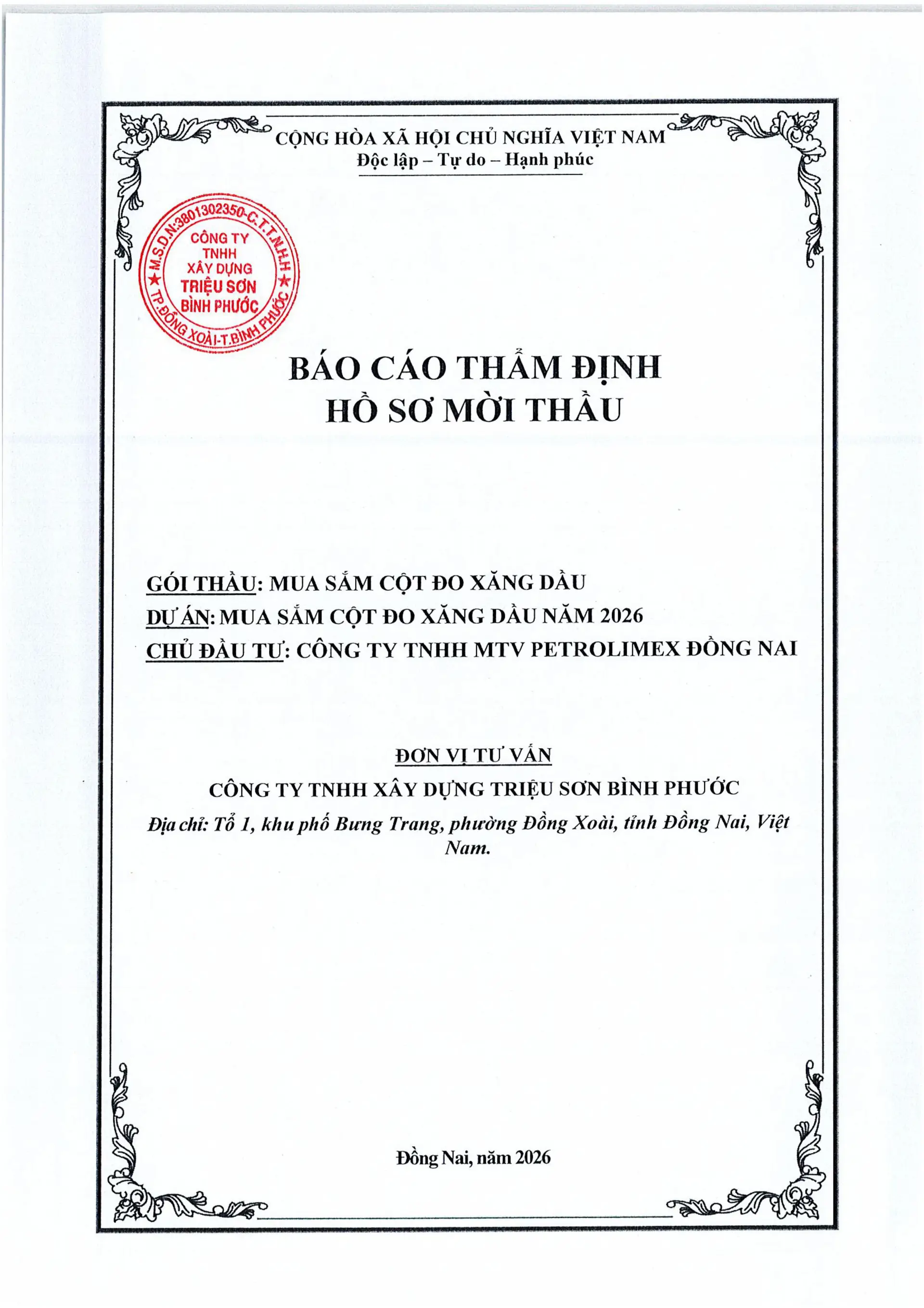 12. THÔNG BÁO MỜI THẦU Gói thầu: mua sắm cột đo xăng dầu Dự án đầu tư: Mua sắm cột đo xăng dầu năm 2026