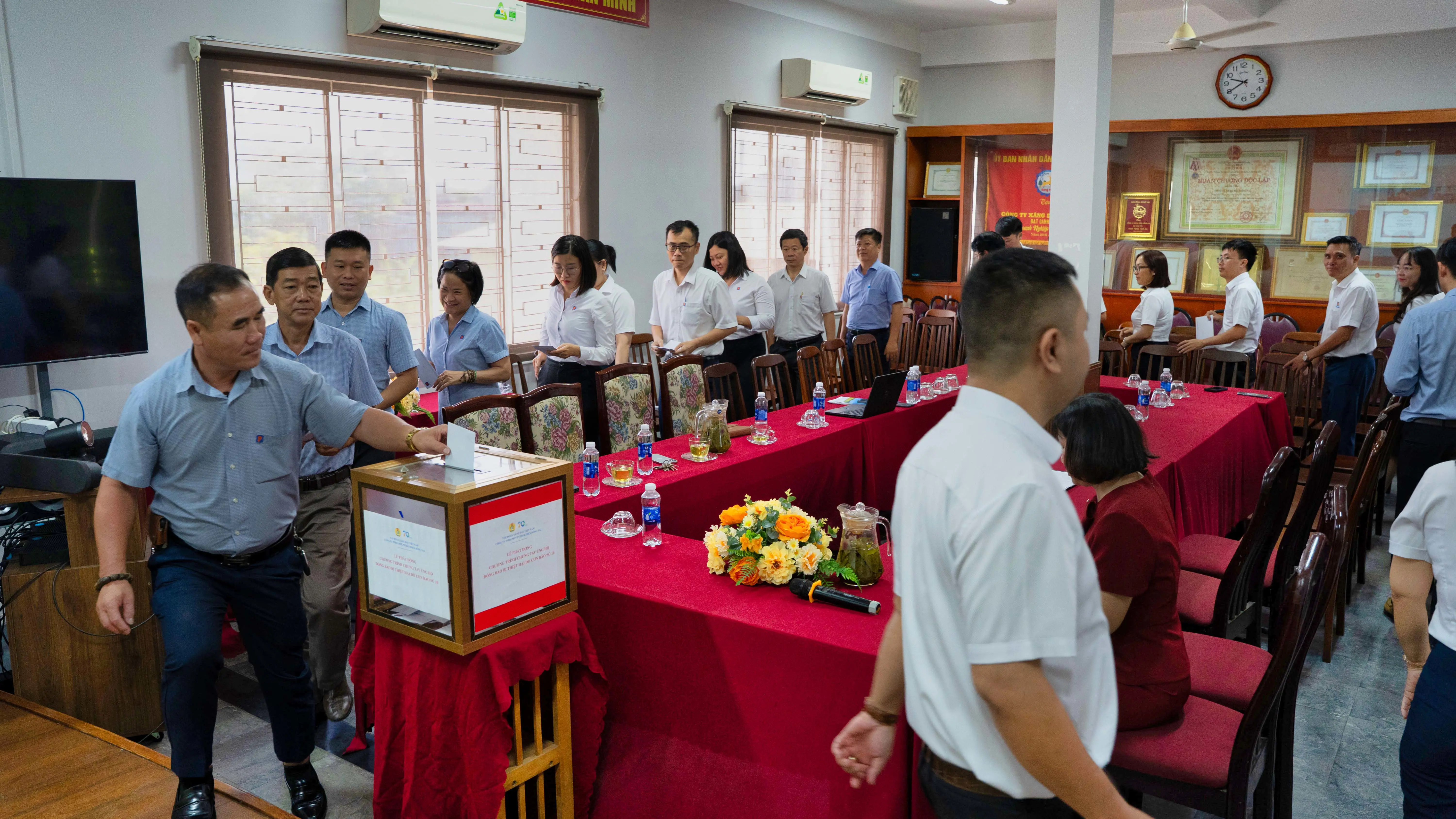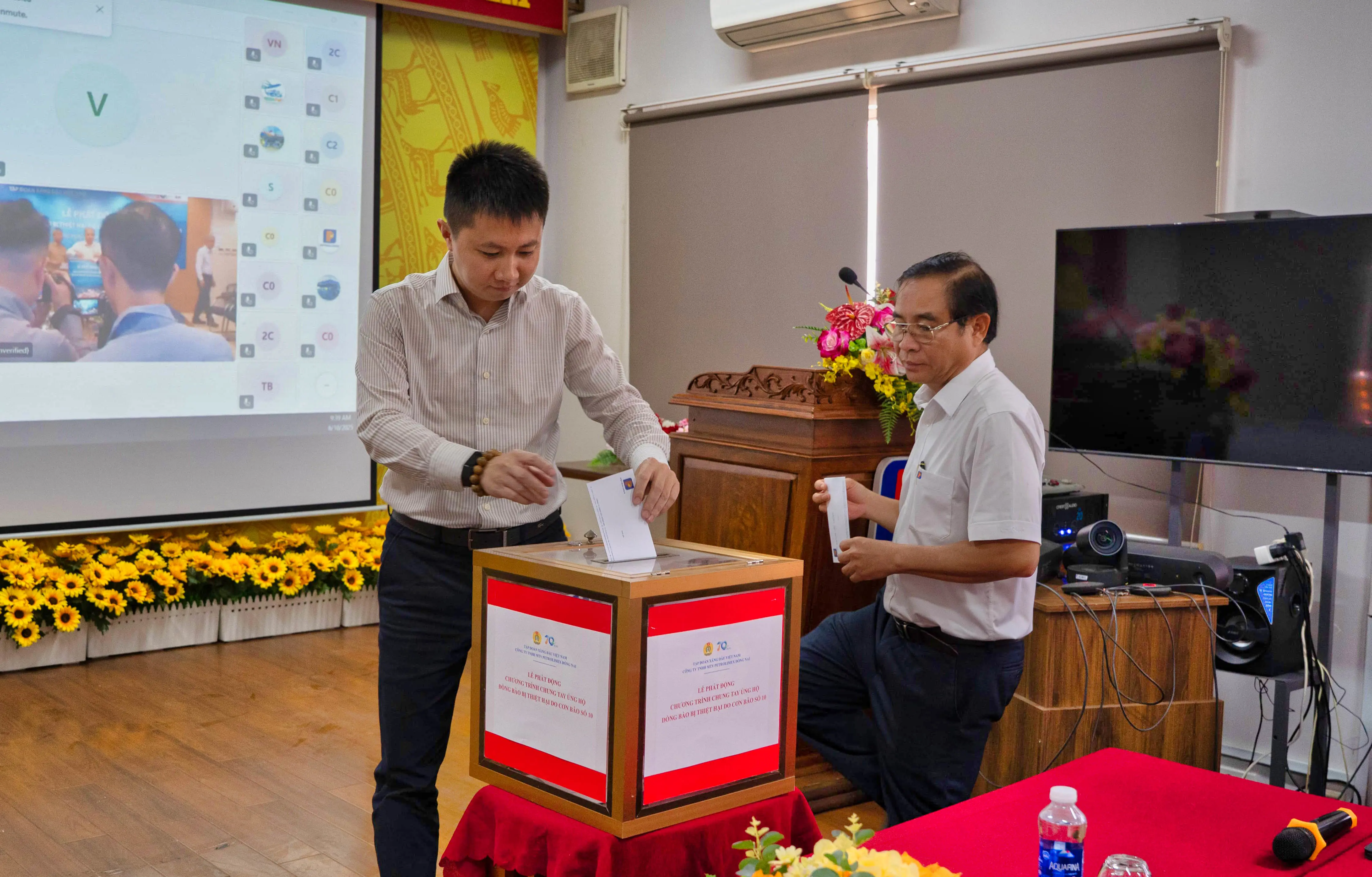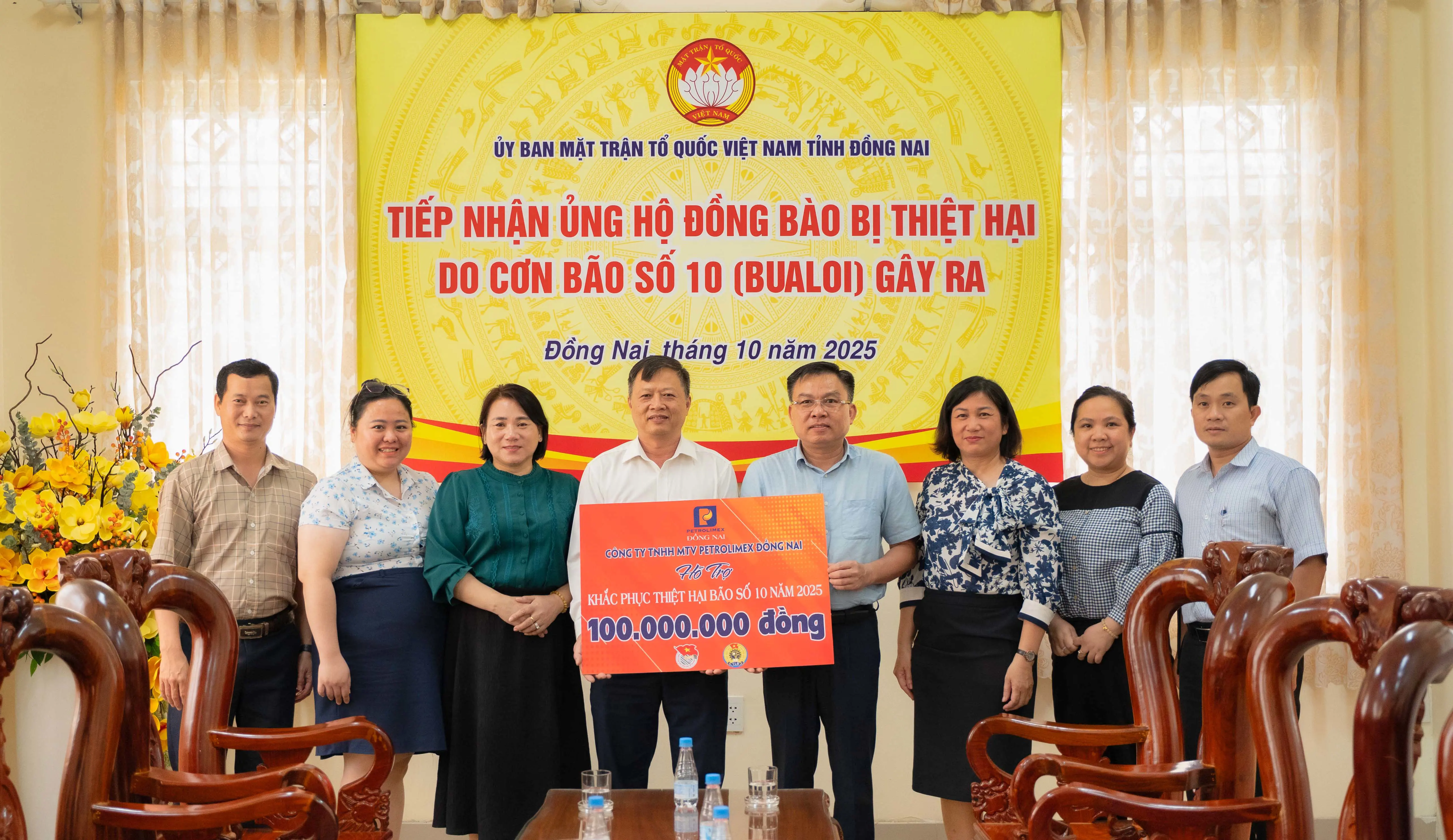 Chiều ngày 9/10/2025, Ông Phạm Văn Nam – Bí thư Đảng ủy, Chủ tịch kiêm Giám đốc đại diện lãnh đạo cùng Bà Nguyễn Thị Lai – Chủ tịch Công đoàn Công ty đã đến trụ sở Ủy ban MTTQ Việt Nam tỉnh Đồng Nai trao số tiền 100 triệu đồng hỗ trợ đồng bào bị ảnh hưởng bởi bão số 10 (Bualoi). Ban Giám đốc Chi nhánh Petrolimex Bình Phước trực tiếp trao số tiền 40 triệu đồng cho UB MTTQ phường Bình Phước – tỉnh Đồng Nai.