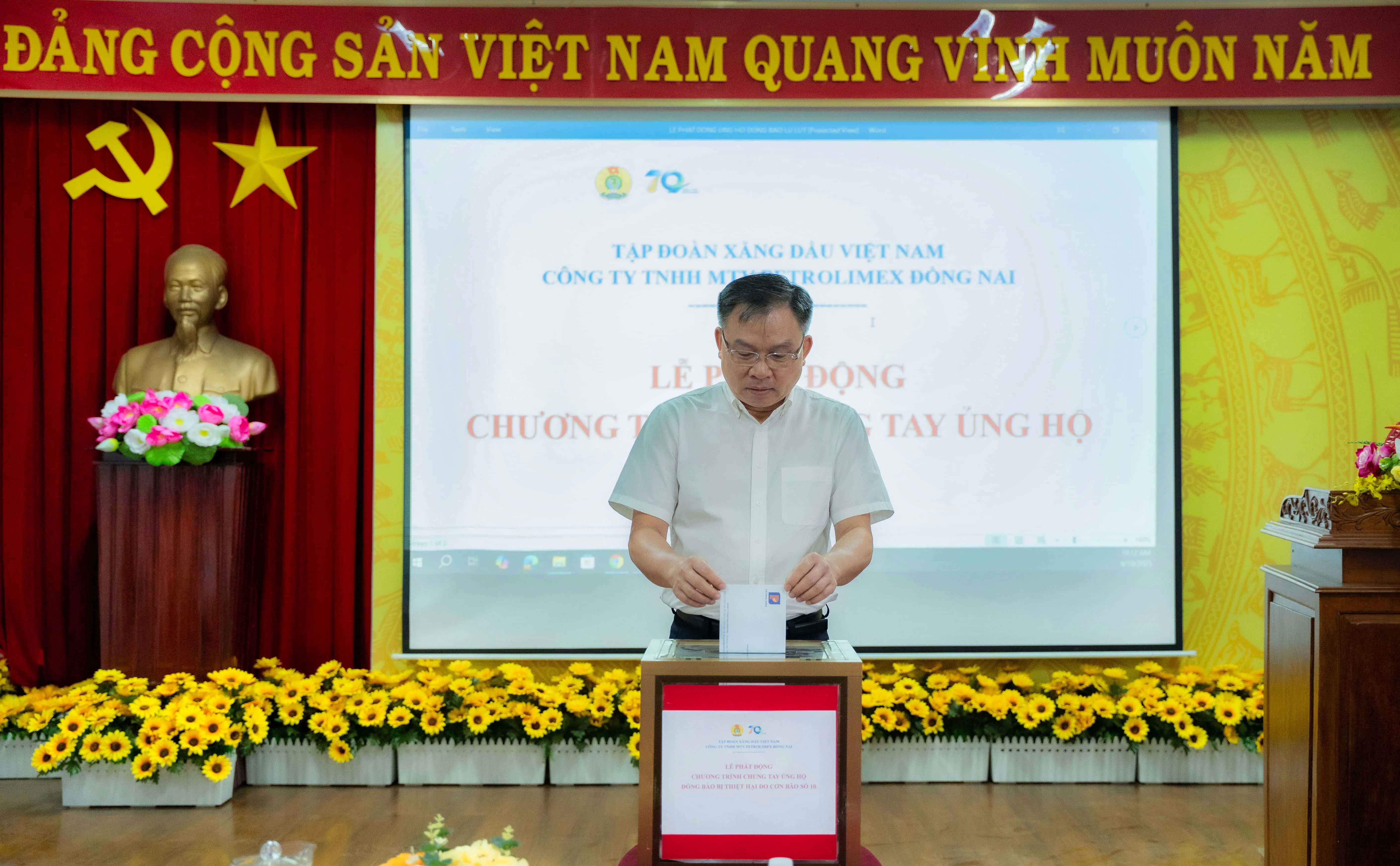 Với tinh thần tương thân tương ái, lan tỏa những giá trị sống tốt đẹp về tình yêu thương, sự chia sẻ nét đẹp văn hóa mang tính truyền thống của mái nhà chung Petrolimex. Đảng ủy, Ban lãnh đạo, Ban Chấp hành Công đoàn cơ sở Công ty TNHH MTV Petrolimex Đồng Nai đã kêu gọi toàn thể CBCNV Công ty ai có ít ủng hộ ít, ai có nhiều giúp đỡ nhiều nhằm chia sẻ những khó khăn mà bà con các tỉnh miền Bắc và miền Trung đang ghánh chịu. Trong 02 ngày từ 06/10 đến 07/10, CBCNV Công ty đã đóng góp bằng tiền mặt số tiền là 140 triệu đồng (Trong đó tại Công ty là 100 triệu đồng và Chi nhánh Petrolimex Bình Phước là 40 triệu đồng).