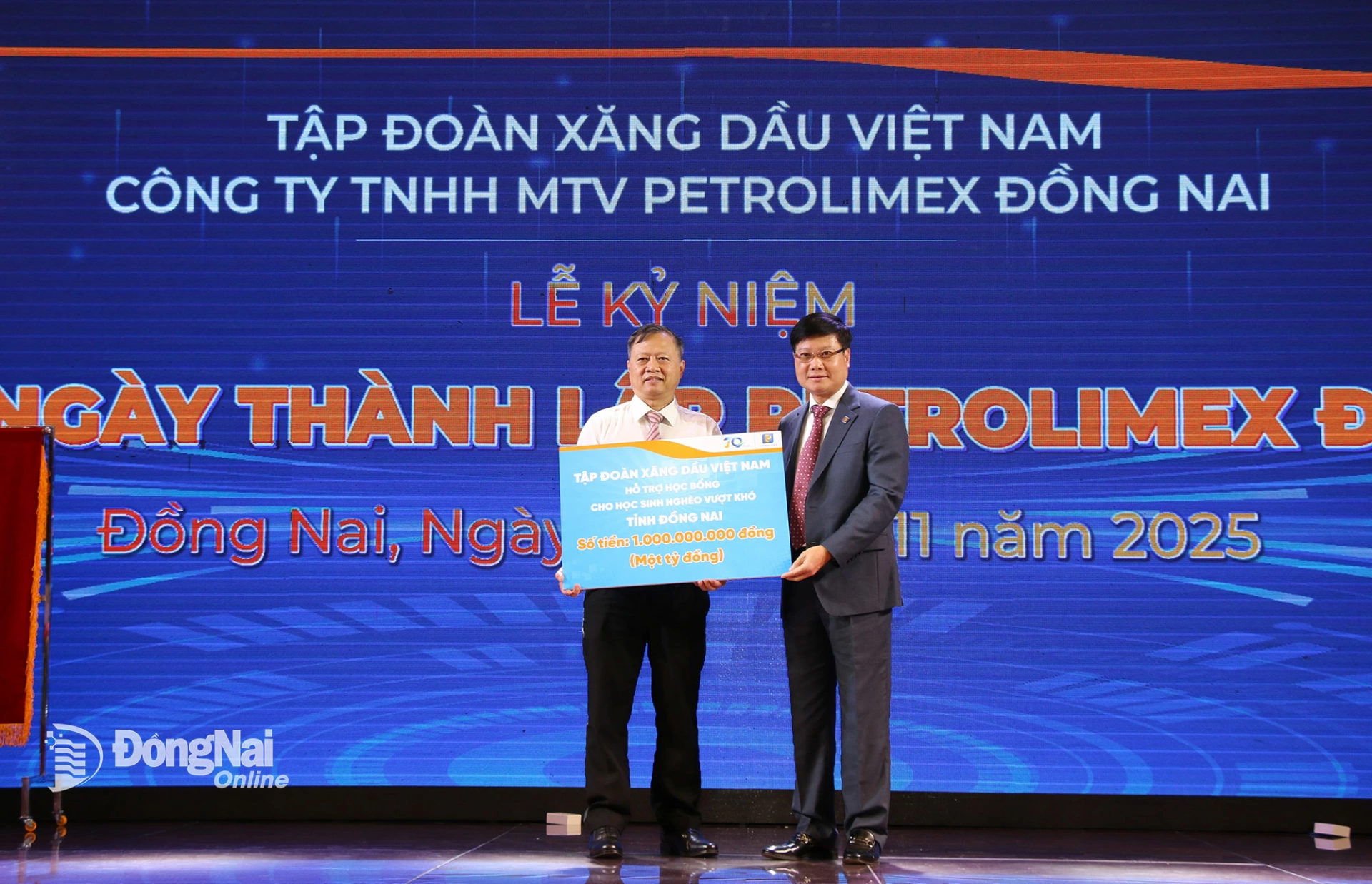 Dịp này, Tập đoàn Xăng dầu Việt Nam đã ủng hộ Quỹ Vì người nghèo tỉnh Đồng Nai 2 tỷ đồng và hỗ trợ học bổng cho học sinh nghèo vượt khó tại Đồng Nai 1 tỷ đồng.