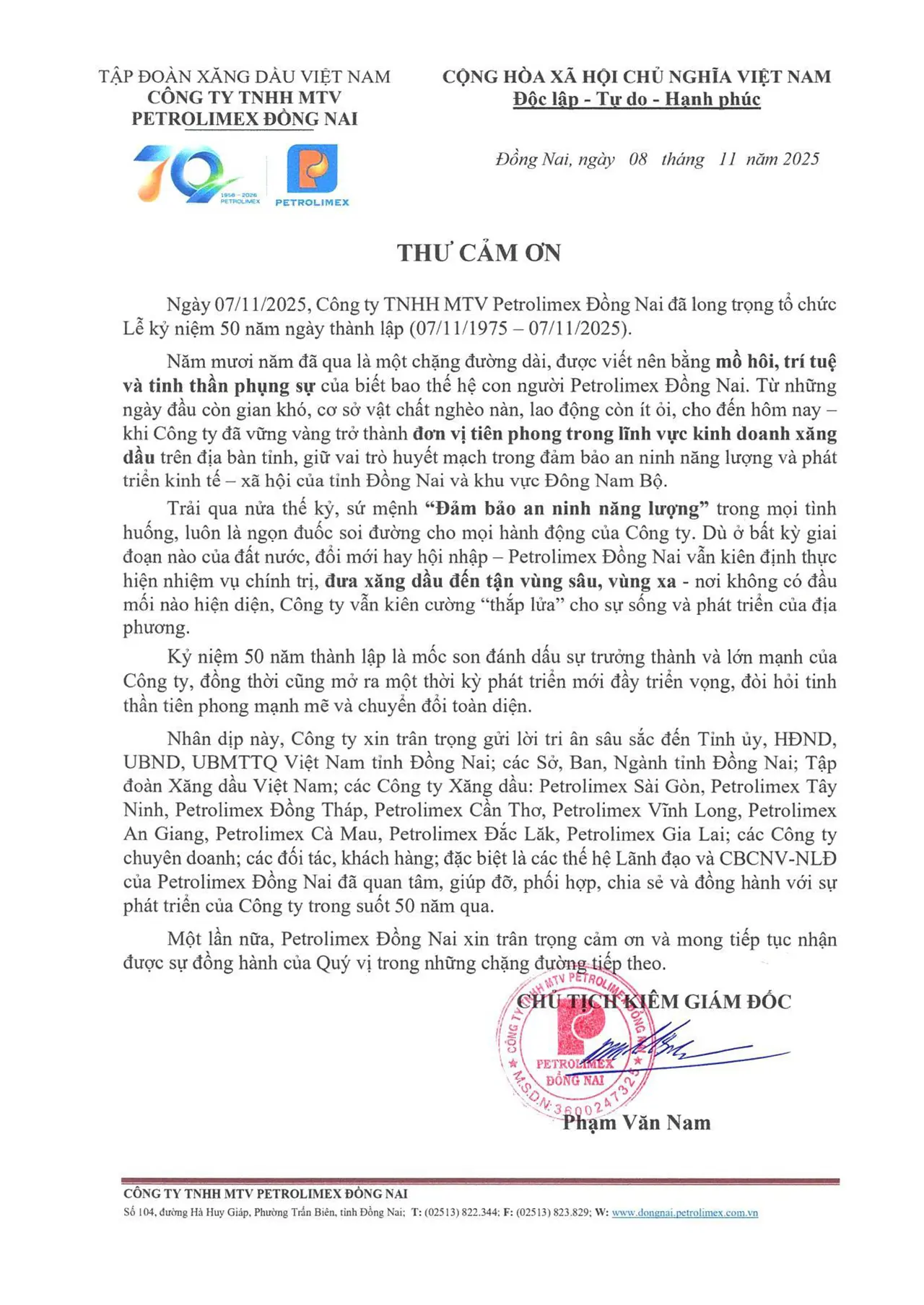 Nguồn: Phạm Văn Nam - Chủ tịch kiêm Giám đốc Công tyPetrolimex Đồng Nai